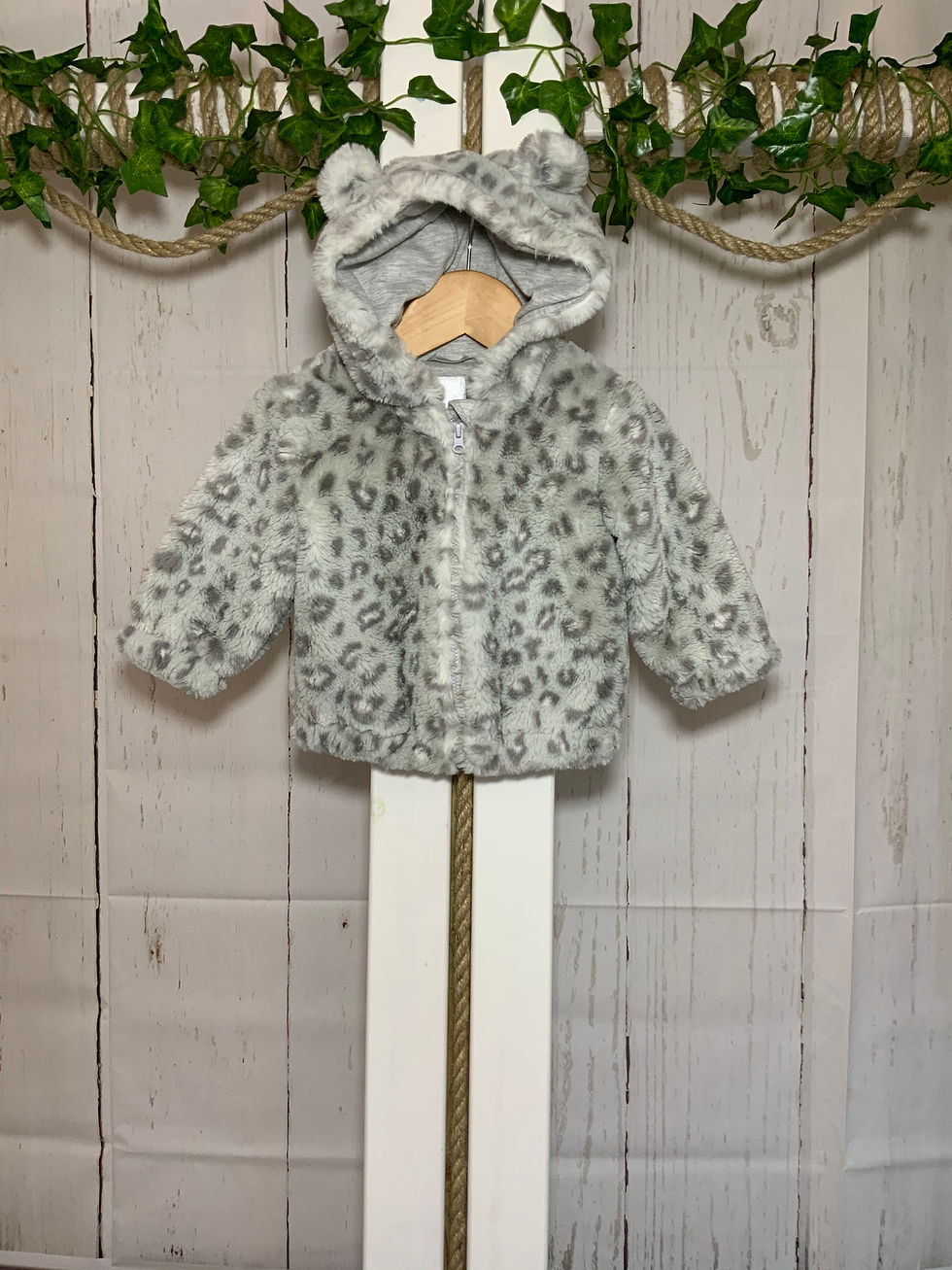 3-6 Months grey leopard print hooded faux fur coat
