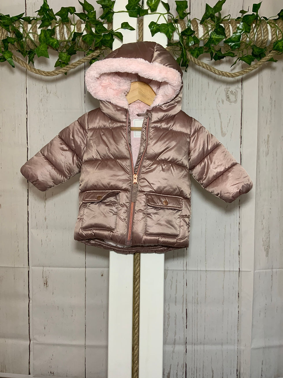 3-6 Months Next rose gold faux fur lined hooded puffa coat